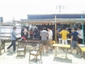 今日の福岡は、志賀島にて……来店型・大手保険代理店グループ様による、海の家を利用しての毎年恒例の社員バーベキュー大会です。